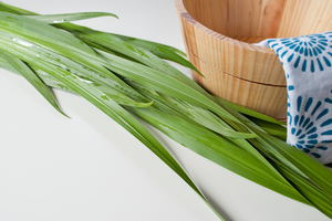 菖蒲をそのまま入れます。爽やかな香りで邪気を払います。